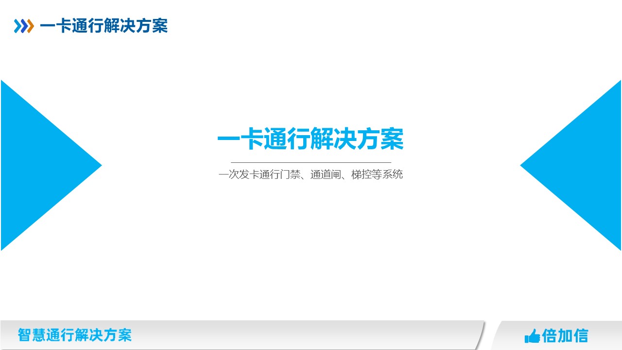 在住宅、寫字樓、酒店、醫院、學校等場景,實現一次授權發卡,可以通行所有門禁、閘機、電梯等設備。設備可脫機、可聯網,施工維保簡單。