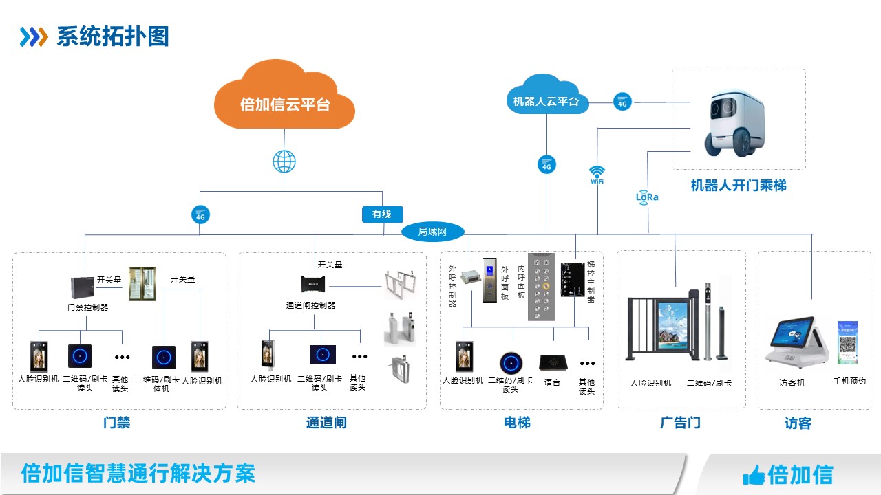 倍加信一碼通、一臉通、一卡通、機(jī)器人 門(mén)禁、梯控通行解決方案