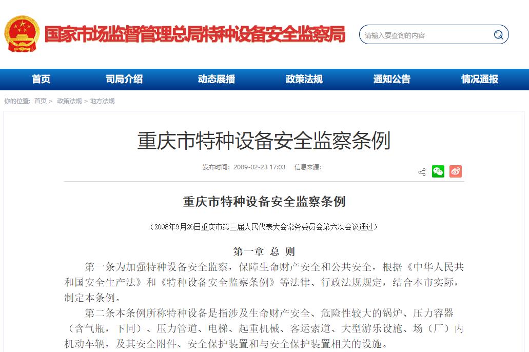 重慶市特種設(shè)備安全監(jiān)察條例