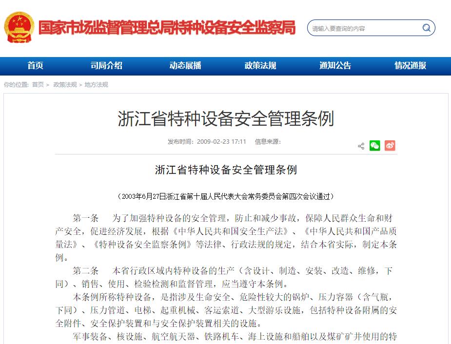 浙江省特種設備安全管理條